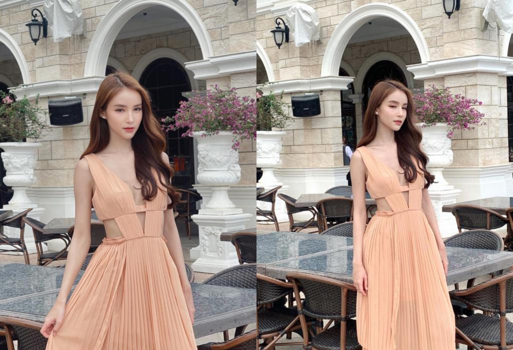 Trước đó, Yoshi Rinrada cũng gây chú ý khi diện váy có thiết kế khoét sâu, cho thấy khuôn ngực căng đầy và vòng eo con kiến. Kiểu trang điểm nhẹ nhàng cũng tôn lên nước da hồng hào của cô