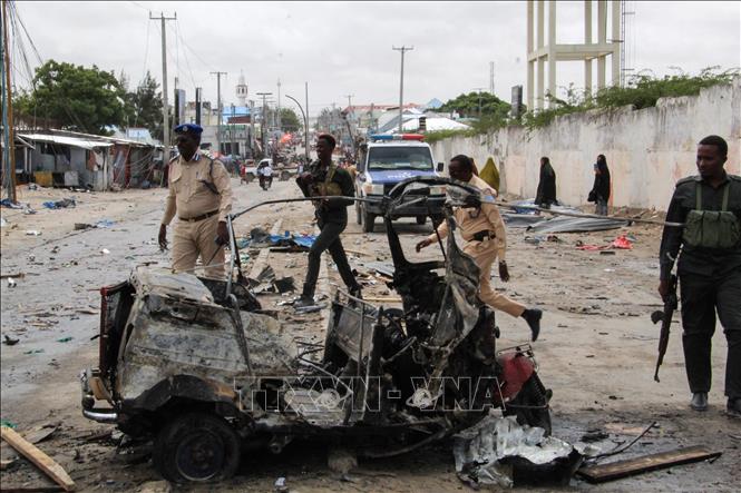 Cảnh sát Somalia điều tra tại hiện trường vụ đánh bom liều chết ở thủ đô Mogadishu. Ảnh tư liệu: AFP/TTXVN