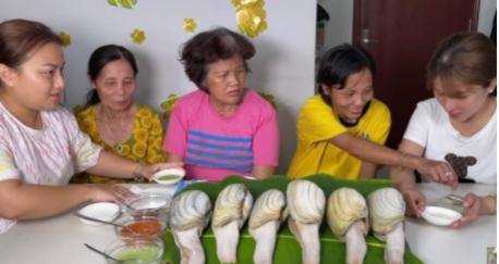 Với Quỳnh Trần và bà Nhân chắc không xa lạ gì với món ăn này nhưng với 2 mẹ, có lẽ đây là lần đầu tiên thưởng thức. Hai bà thưởng thức một cách ngon lành, tuy nhiên vì hình thù nhạy cảm này mà dân mạng vẫn cảm thấy 'nổi da gà'.