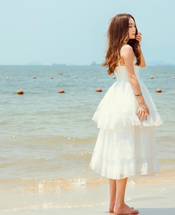 Diễn viên tạo dáng trên biển khi du lịch năm ngoái.