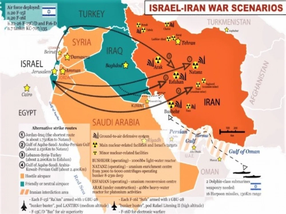 Một kịch bản chiến tranh giữa Israel và Iran.