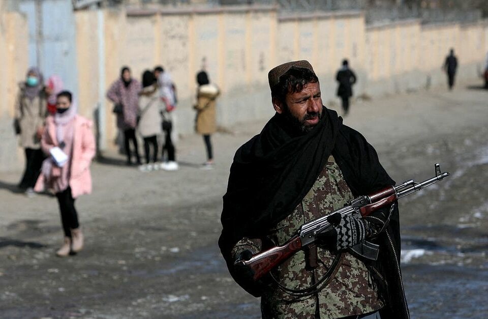 Một thành viên Taliban đứng gác trên đường phố ở Kabul, Afghanistan tháng 12/2021. Ảnh: Reuters.
