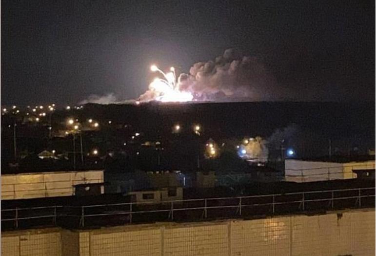 Nhà báo người Ukraine Yuriy Butusov nói rằng, kho đạn Nga dường như đã bị phá hủy bởi tên lửa đạn đạo OTR-21 Tochka-U của lực lượng Kiev. Tuy nhiên, phía Ukraine chưa lên tiếng về việc này. Nếu vụ việc này là sự thật, đây sẽ là vụ phóng vũ khí thứ 2 của Ukraine vào lãnh thổ Nga kể từ khi Moscow bắt đầu chiến dịch quân sự ở nước láng giềng hôm 24/2.