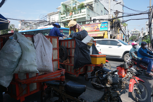 Đến "khu Sở Thùng", phường 11, quận Bình Thạnh, gặp những người thu gom rác, đa số đều khẳng định không dám nghĩ đến việc chuyển đổi phương tiện mới. Chị Trúc, người thu gom rác hơn 10 năm, cho biết ở đây từng có nhiều người vay tiền để mua xe tải nhưng chạy được vài tháng đã bán xe, mua xe tự chế chạy lại. Bởi xe tải có thùng xe thấp, muốn chở rác, chủ xe phải cơi thêm thùng, khi ra đường rất mệt mỏi với CSGT, khi đi đăng kiểm phải tháo thùng; chưa kể nhiều người không biết chữ, không thể học bằng lái xe, phải tốn thêm khoản tiền thuê người lái…