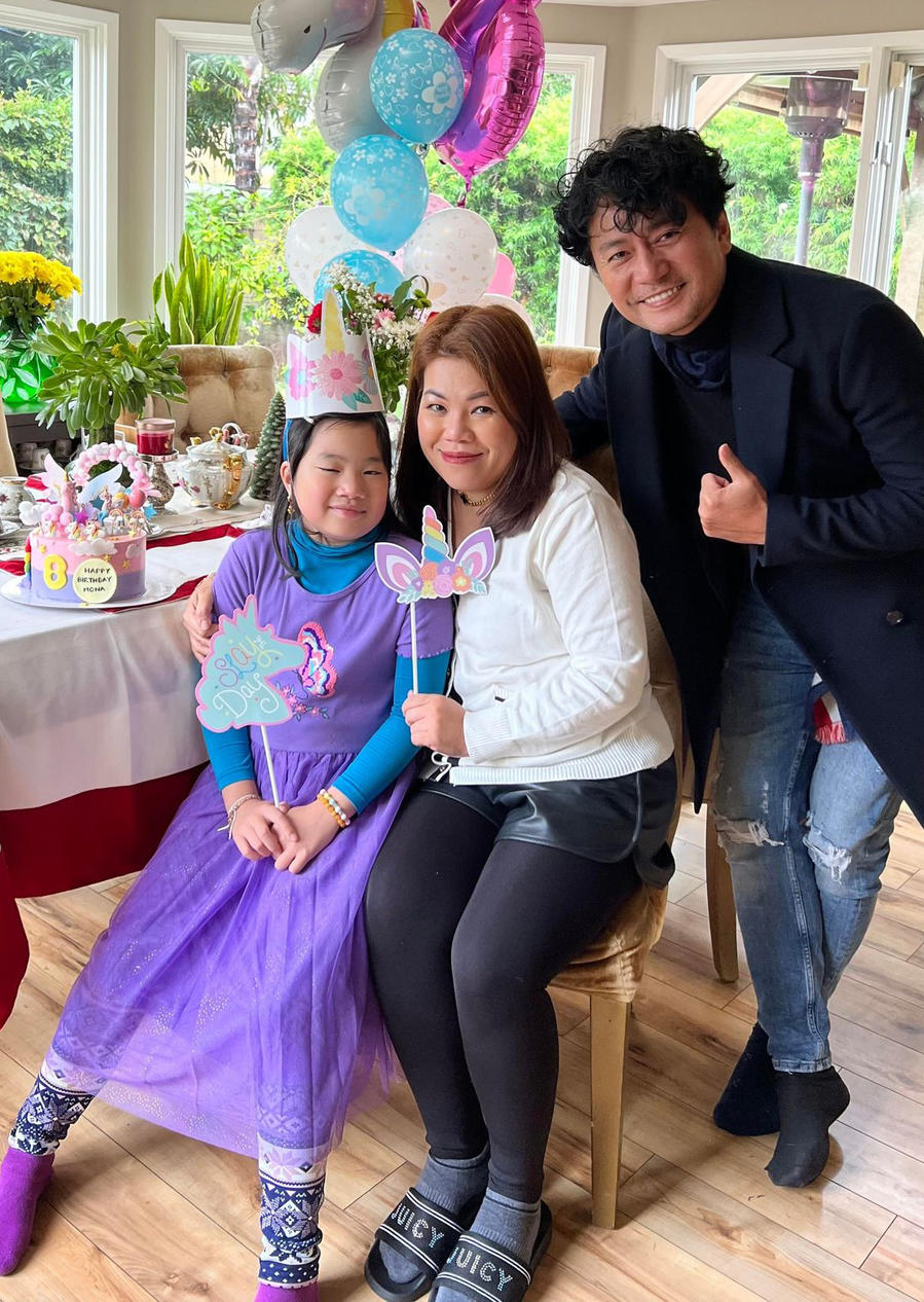 Trương Minh Cường vui khi con gái lớn nhanh nhưng cũng sợ bé đến tuổi thích chơi với bạn bè hơn là gần gũi, quấn quýt bên bố mẹ. Mona vừa đón sinh nhật lần thứ 8. Bé đang học lớp 2 ở Mỹ.