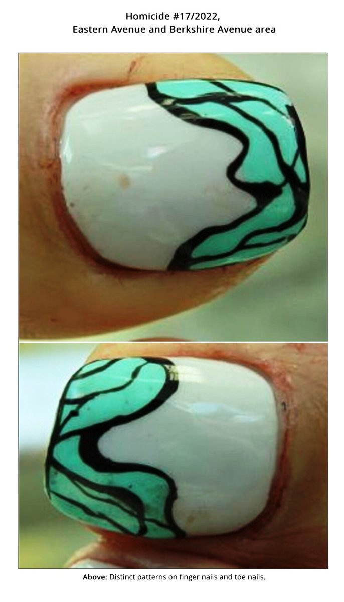 Hình móng tay do cảnh sát cung cấp để người dân giúp nhận diện nạn nhân.