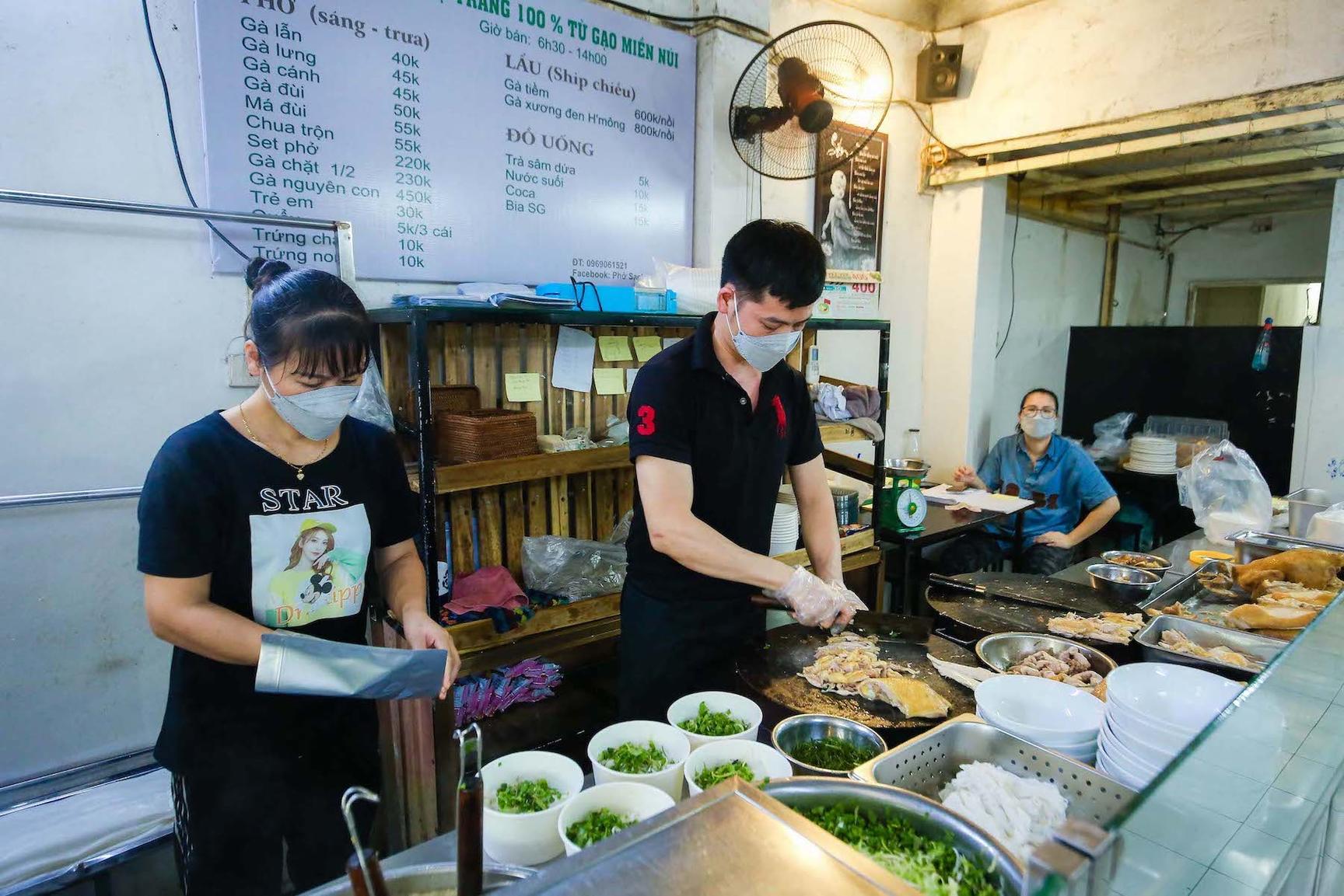 Anh Trà cho biết, trung bình mỗi ngày quán tiêu thụ khoảng 500 bát phở, hơn 30 con gà. Trong giai đoạn bị ảnh hưởng của dịch, số lượng có giảm tuy nhiên thời gian gần đây, khách đã bắt đầu đông trở lại.