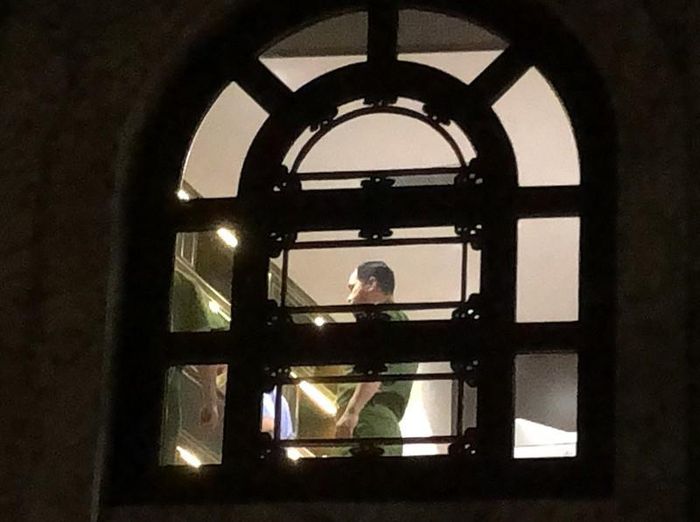 Đến 22 giờ 05, tiếp tục có thêm một xe biển xanh được điều động tới tòa nhà, phục vụ việc tiến hành các biện pháp nghiệp vụ của cơ quan tố tụng.