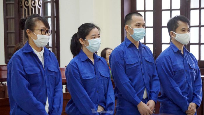 Lần lượt các bị cáo: Chi, Huệ, Nha, Hoàng (từ trái sang phải ảnh).