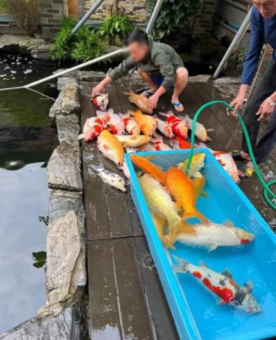 Của đau con sót, chủ nhân của bể cá Koi dù cố gắng tìm mọi cách cứu những con còn sót lại nhưng số lượng cá đã chết vẫn lên tới 26 con.