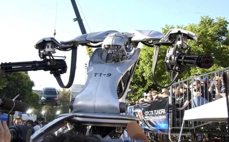 Igor Novikov, cựu cố vấn của Tổng thống Ukraine Volodymyr Zelensky nói rằng quân đội Ukraine đang truy đuổi lực lượng Nga bằng các máy bay không người lái thương mại được ngụy trang để trông giống như máy móc trong loạt phim "Kẻ hủy diệt" nổi tiếng của Hollywood. Trong ảnh là một con robot được chụp bên ngoài buổi công chiếu "Kẻ hủy diệt 3: Sự trỗi dậy của những cỗ máy" ở Los Angeles, California, vào ngày 30/6/2003. Ảnh Getty