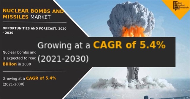 Theo dự báo của Công ty nghiên cứu thị trường Allied Market Research, có trụ sở tại bang Oregon (Mỹ), trong 10 năm tới thị trường tên lửa và bom hạt nhân toàn cầu sẽ vượt mức 126 tỷ USD, tức là tăng gần 73% so với thời điểm của năm 2020.