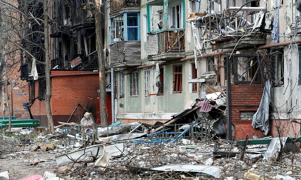 Một khu nhà tan hoang sau giao tranh ở thành phố Mariupol, miền nam Ukraine hôm 18/4. Ảnh: Reuters.