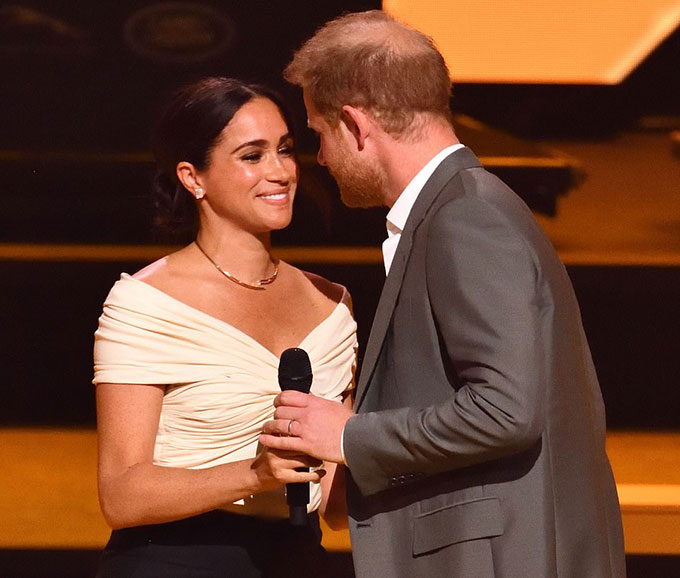 Khoảnh khắc tình tứ của Harry và Meghan trên sân khấu khai mạc Invictus Games hôm 15/4. Ảnh: GoffPhoto
