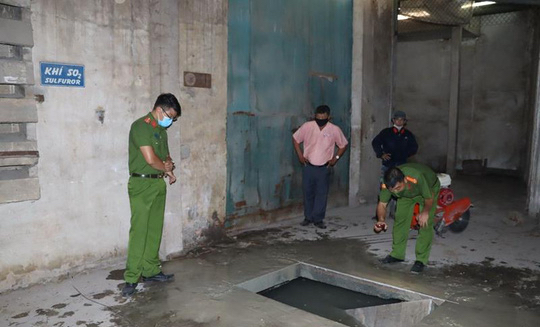 Tiếp tục kiểm tra, lực lượng công an còn phát hiện hai hầm bê tông được xây dựng âm dưới đất bên trong xí nghiệp có chứa chất thải công nghiệp, nghi vấn đây là số chất thải phát sinh trong quá trình xay nghiền vỏ bóng đèn được đổ ra.