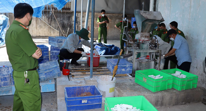Công an phát hiện gần 5 tấn thủy tinh có hóa chất chứa trong 195 bao và gần 370.000 bóng đèn chưa kịp xay nghiền đựng trong các sọt nhựa. Nước thải trong quá trình xay nghiền bóng đèn được thoát trực tiếp ra hệ thống mương thoát nước.