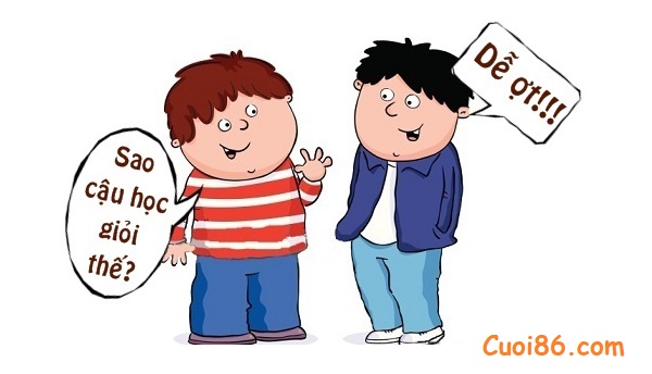 – Này Tý, cậu nói xem chúng ta ngồi cùng bàn mà sao lúc nào điểm tớ cũng thấp lè tè, còn điểm của cậu lại cao chót vót như vậy. Cậu có bí quyết gì không chỉ cho tớ với!