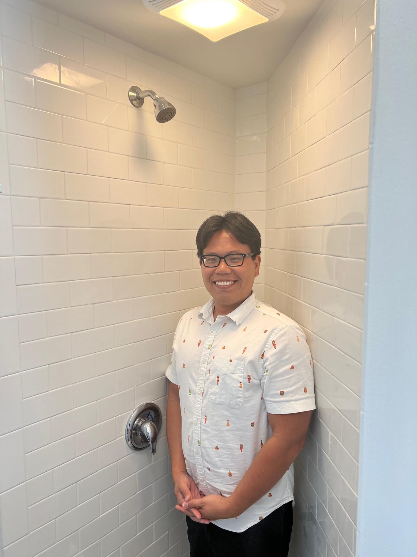 Chủ quán Urban Vietnamese - Khôi Đăng dự kiến sẽ làm việc nhiều giờ nên anh đã lắp một vòi hoa sen nhỏ ở phía sau nhà hàng của mình. (Ảnh Jax Daily Record)