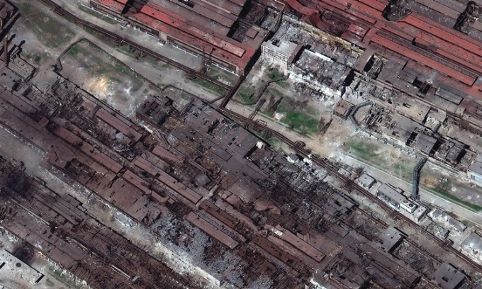 Các bức ảnh vệ tinh chụp hôm 29/4 cho thấy mái của một số tòa nhà bên trong nhà máy thép Azovstal ở thành phố cảng miền nam Mariupol của Ukraine xuất hiện những lỗ thủng lớn. Nhiều công trình bị sập hoàn toàn và một số chỉ còn là đống đổ nát. Một số tòa nhà dân cư và chính phủ nằm ở phía đông nhà máy cũng bị phá hủy hoàn toàn.