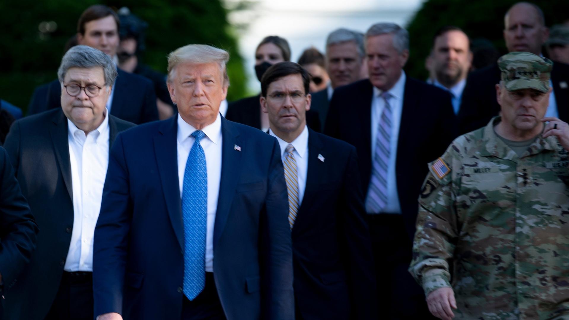 Chủ tịch Hội đồng Tham mưu trưởng liên quân Mark Milley và Bộ trưởng Tư pháp William Barr khi đó được cho là những người phản đối dùng vũ lực với người biểu tình.
