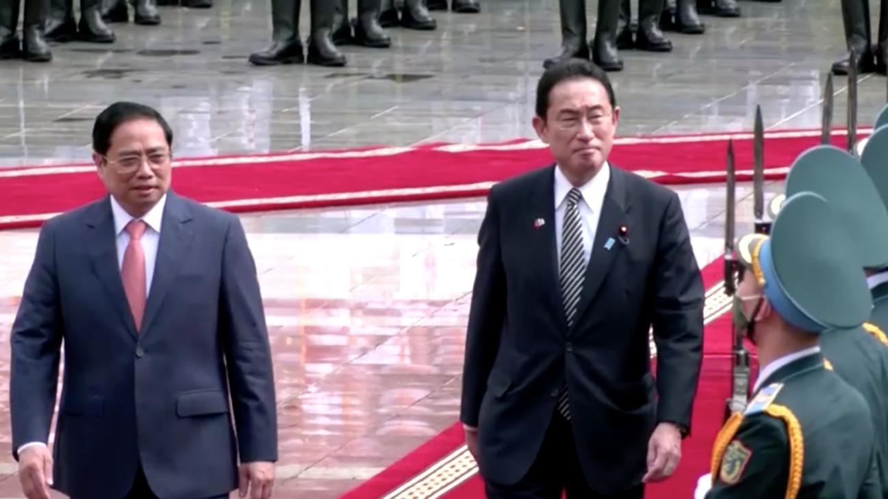 Ông Kishida Fumio khẳng định, sẽ tăng cường hợp tác với Việt Nam, bằng việc hỗ trợ năng lực an ninh mạng cho quân đội Cộng sản cũng như hợp tác phòng vệ, nâng cao năng lực bảo đảm an toàn trên biển; hỗ trợ nhà cầm quyền chuyển đổi năng lượng, cắt giảm phát thải carbon, tăng cường năng lực phòng chống thiên tai qua vệ tinh quan sát trái đất.