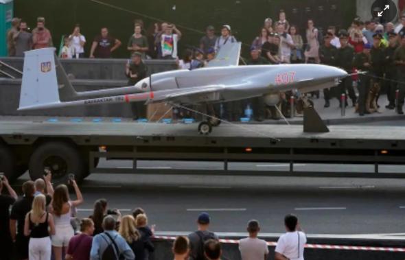 Mẫu máy bay không người lái TB2 xuất hiện tại lễ duyệt binh mừng Ngày Quốc khánh Ukraine ở Kyiv tháng 8/2021. Ảnh: AP.