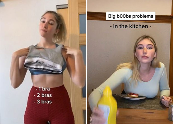 Gần đây, Billie tải lên ba video dưới nicknname @billiebopbillie trên TikTok để khẳng định cô gặp rất nhiều khó khăn trong cuộc sống với bộ ngực khủng. Billie cho biết cô phải mặc ít nhất ba chiếc bra thể thao để có thể tập gym. Cô gái 23 tuổi cũng thường xuyên làm bẩn áo trong bếp. Bộ ngực của cô luôn chạm vào đĩa thức ăn mỗi khi Billie nghiêng người về phía trước để lấy nước sốt.