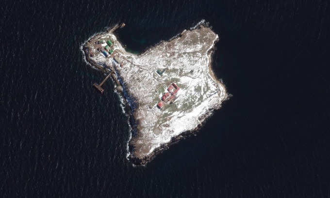 Đảo Zmiinyi trong ảnh vệ tinh chụp hôm 14/3. Ảnh: Maxar.