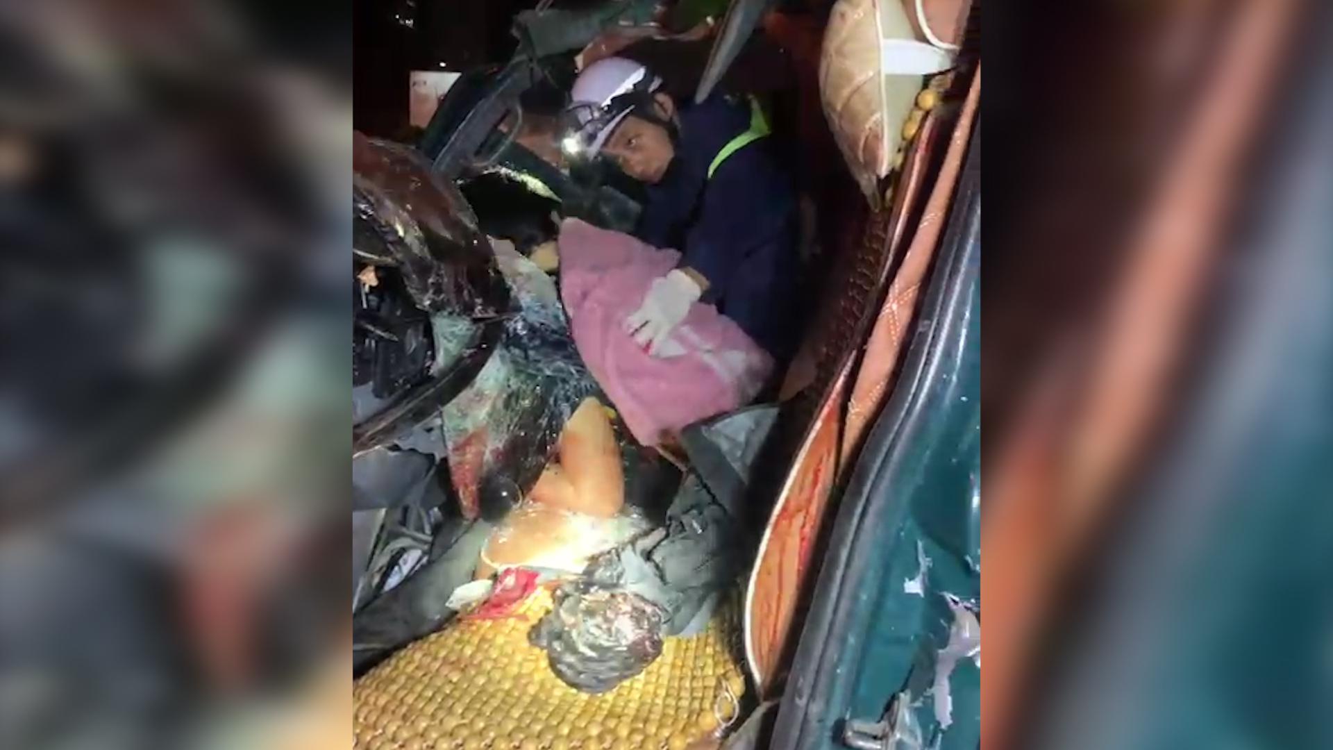 Old  Default Nín thờ với cảnh sát dùng kìm cắt thép, cứu 3 người mắc kẹt trong ô tô bẹp dúm