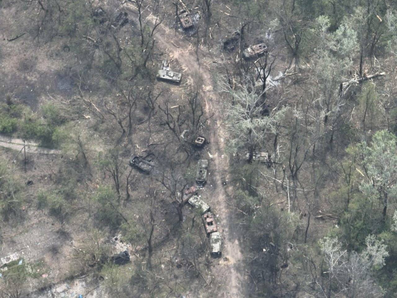 Các phương tiện khác, có thể đã lùi lại khi cố gắng băng qua sông dường như cũng đã bị phá hủy hoặc bị bỏ lại khi hỏa lực pháo binh của Ukraine dội xuống vị trí của họ.