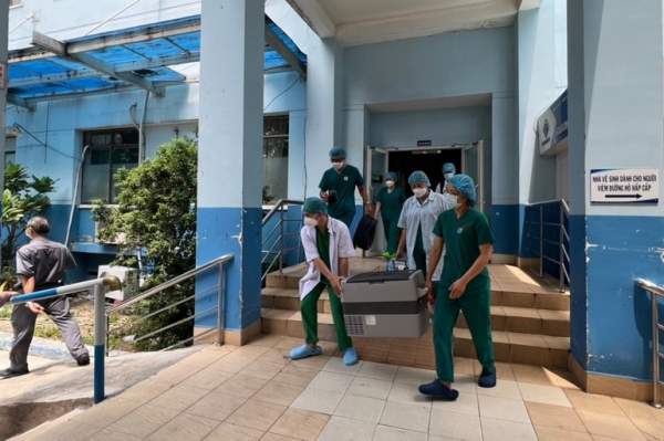 Các phần tạng hiến của bệnh nhân được nhân viên y tế khẩn trương chuyển đến nơi cần ghép (Ảnh: BVCC).