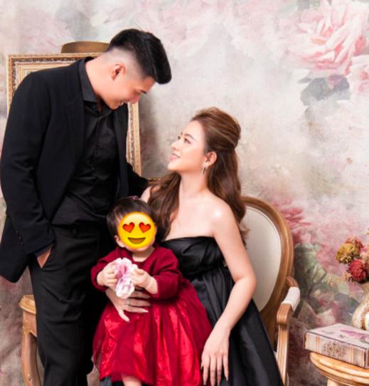 Vợ chồng chị Nhi và con gái 1 tuổi.