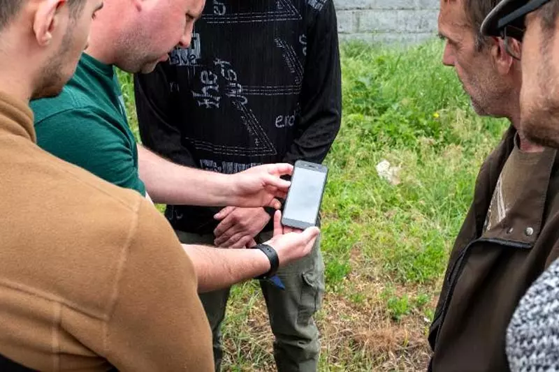 Các nhân viên SBU đang xem xét chiếc điện thoại di động thu giữ của nghi phạm. Ảnh: CNN