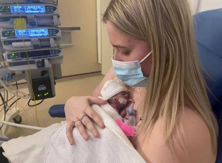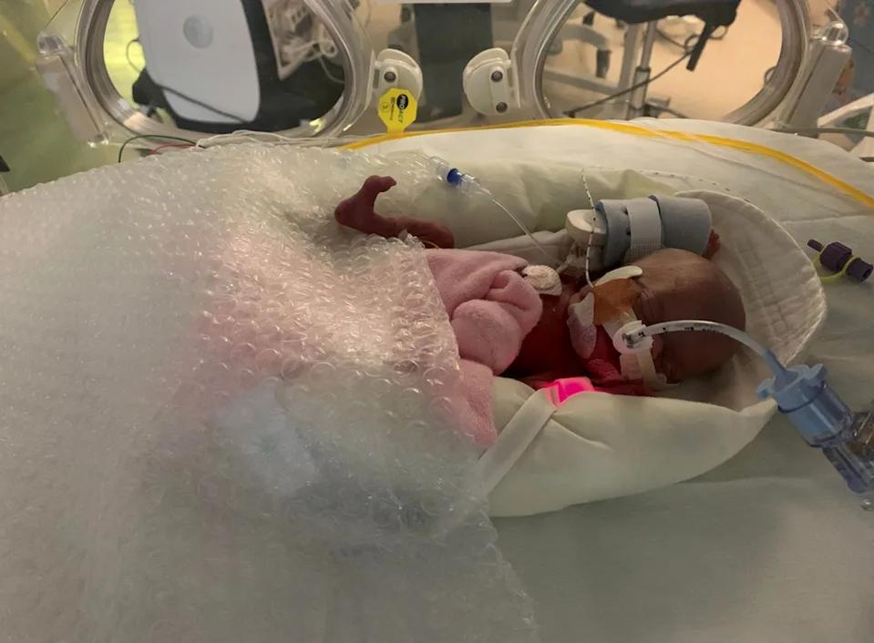 Em bé chào đời khi mới 24 tuần và 6 ngày, dài 24cm và nặng tương đương một quả táo. Cô bé đã được xuất viện vào tháng 8/2021 sau 13 tháng sống trong phòng chăm sóc đặc biệt dành cho trẻ sơ sinh. Thời điểm xuất viện, bé đạt cân nặng 6,3kg và đã khỏe mạnh hơn rất nhiều.