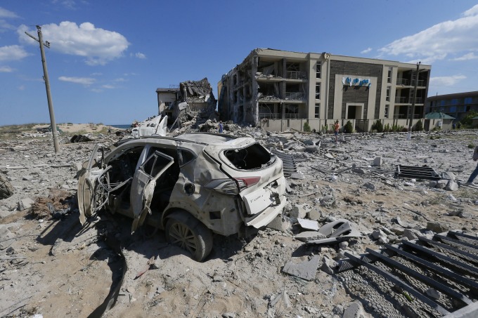 Các mục tiêu bị phá hủy sau cuộc tấn công tên lửa nhằm vào Zatoka, Odessa, Ukraine, hôm 16/5. Ảnh: AFP.