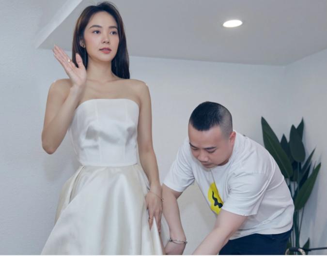 Minh Hằng rạng rỡ khi đi thử váy cưới (Ảnh: Nhân vật cung cấp).