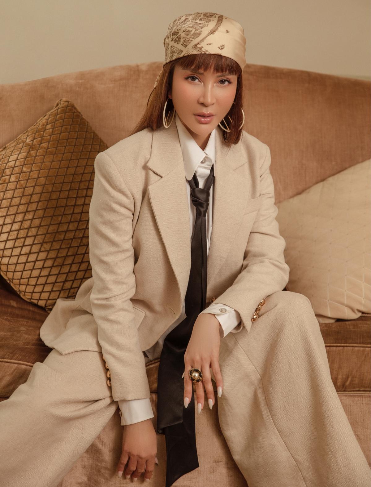 Blazer dáng rộng thường được nữ diễn viên sử dụng trong công việc, đảm bảo trông sang trọng, thanh lịch nhưng không cứng nhắc, nhàm chán.
