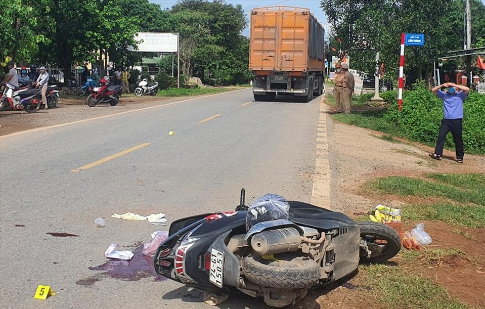 Chị T.T.H (40 tuổi, trú tại khu phố 6, thị trấn Cam Lộ) điều khiển xe môtô mang biển số 74G1-150.53, khi đến vị trí nói trên thì xảy ra va chạm với xe container biển số 36H-033.58 kéo theo rơ moóc biển số 36R-028.12 do Nguyễn Đại Nghĩa (40 tuổi, trú tại huyện Tân Kỳ, tỉnh Nghệ An) điều khiển chạy cùng chiều.