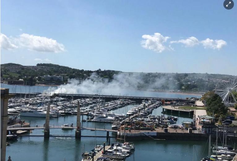 Người dân có thể nhìn thấy khói bốc lên từ xa tại cảng. Ảnh: Devon Live.