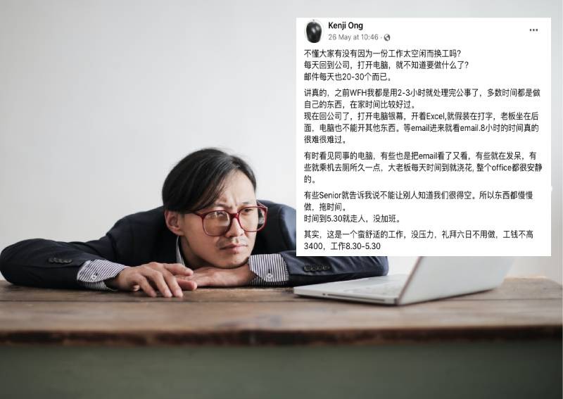 Người dùng Kenji Ong chia sẻ trên một nhóm Facebook rằng anh muốn nghỉ việc do quá nhàm chán.