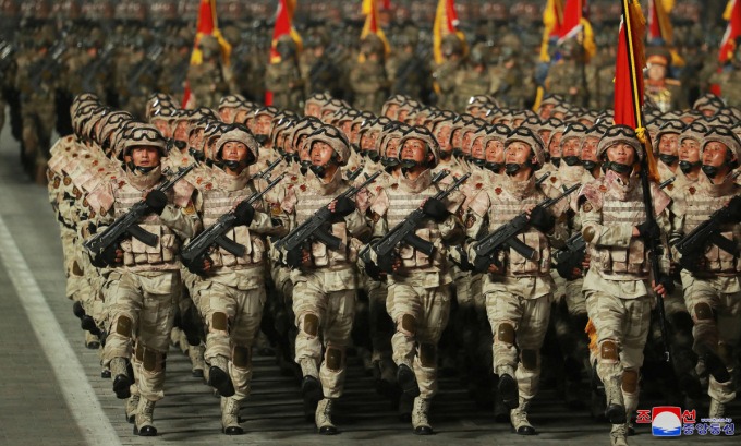 Quân nhân Triều Tiên trong lễ duyệt binh hồi tháng 4. Ảnh: KCNA.