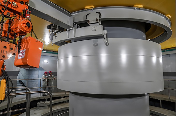 Các nhân viên kỹ thuật kiểm tra tổ máy số 5 vào hôm 30/5. Ảnh: Xinhua