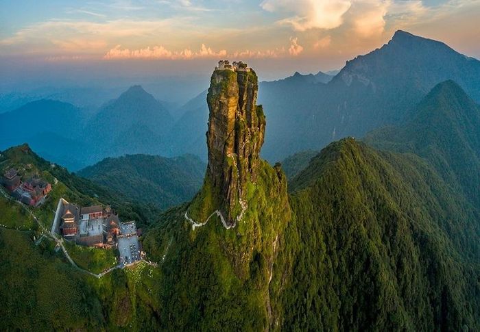 Trên đỉnh Phạm Tịnh Sơn (Fanjingshan) thuộc dãy núi Vũ Lăng, tỉnh Quý Châu (Trung Quốc) có hai ngôi đền nhỏ được xây dựng trên đỉnh một chóp đá chẻ đôi có tên gọi là Hồng Vân Kim Đỉnh (nghĩa là đỉnh núi vàng mây đỏ).