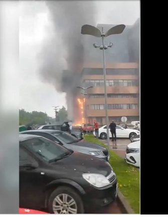 Video từ hiện trường cho thấy một đám khói dày bốc lên từ tòa nhà. Các nhà chức trách đã chặn các phương tiện lưu thông ở con đường gần đó.