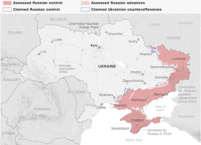 Ở phía bên kia, Mỹ, Anh và một số quốc gia Trung, Bắc Âu coi chiến dịch quân sự của Nga là dấu hiệu cho thấy Moscow muốn mở rộng ảnh hưởng. Các nước này tin rằng Ukraine là mặt trận chính trong cuộc đối đầu lớn hơn giữa phương Tây với Nga.