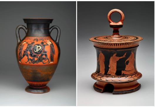 Chiếc vò hai quai Hy Lạp có từ thế kỷ thứ 6 trước Công nguyên và chiếc bình có từ năm 450 trước Công nguyên đã bị Hernandez đập vỡ. Ảnh: Bảo tàng Nghệ thuật Dallas.