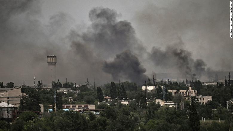 Khói bốc lên từ thành phố công nghiệp Sievierodonetsk ở Luhansk ngày 2/6. Ảnh Reuters.