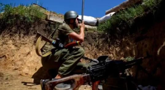 Một người lính Ukraine sử dụng ống nḥm trên chiến tuyến ở Krasnohorivka, Donetsk ngày 3 tháng 6 năm 2022. Ảnh New Voice of Ukraine.