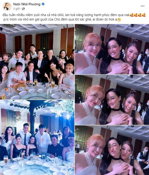 Sau đó, sự chú ý đã "va phải" Nhã Phương khi bà xã Trường Giang chẳng có phản ứng gì, thậm chí có vẻ không bận tâm đến ồn ào và còn cập nhật ảnh tình tứ cùng ông xã dự đám cưới của Mạc Văn Khoa và Vy Pumpe.
