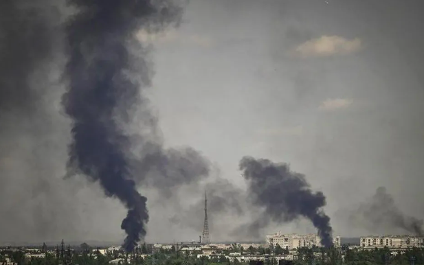 Khói bốc lên từ thị trấn Sievierodonetsk sau những cuộc giao tranh dữ dội giữa quân đội Nga và Ukraine. Ảnh: AFP